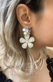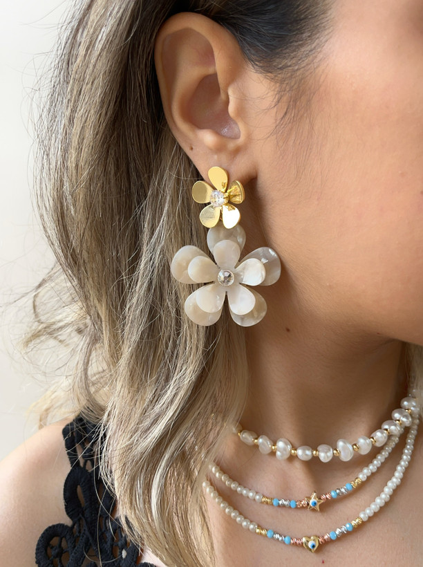 گوشواره آویزی ترکیب گل صدفی و استیل